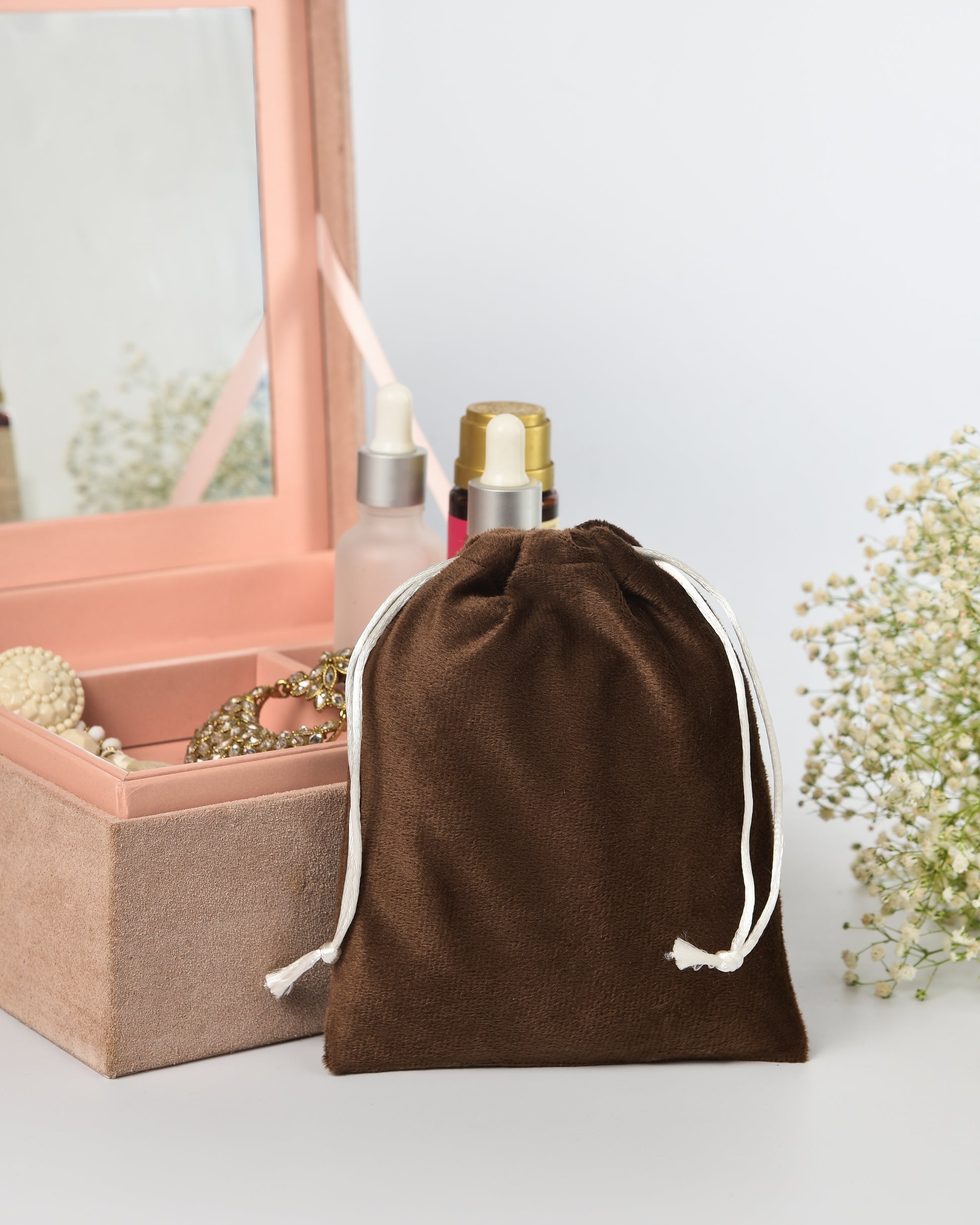 Brown Velvet drawstring Potli