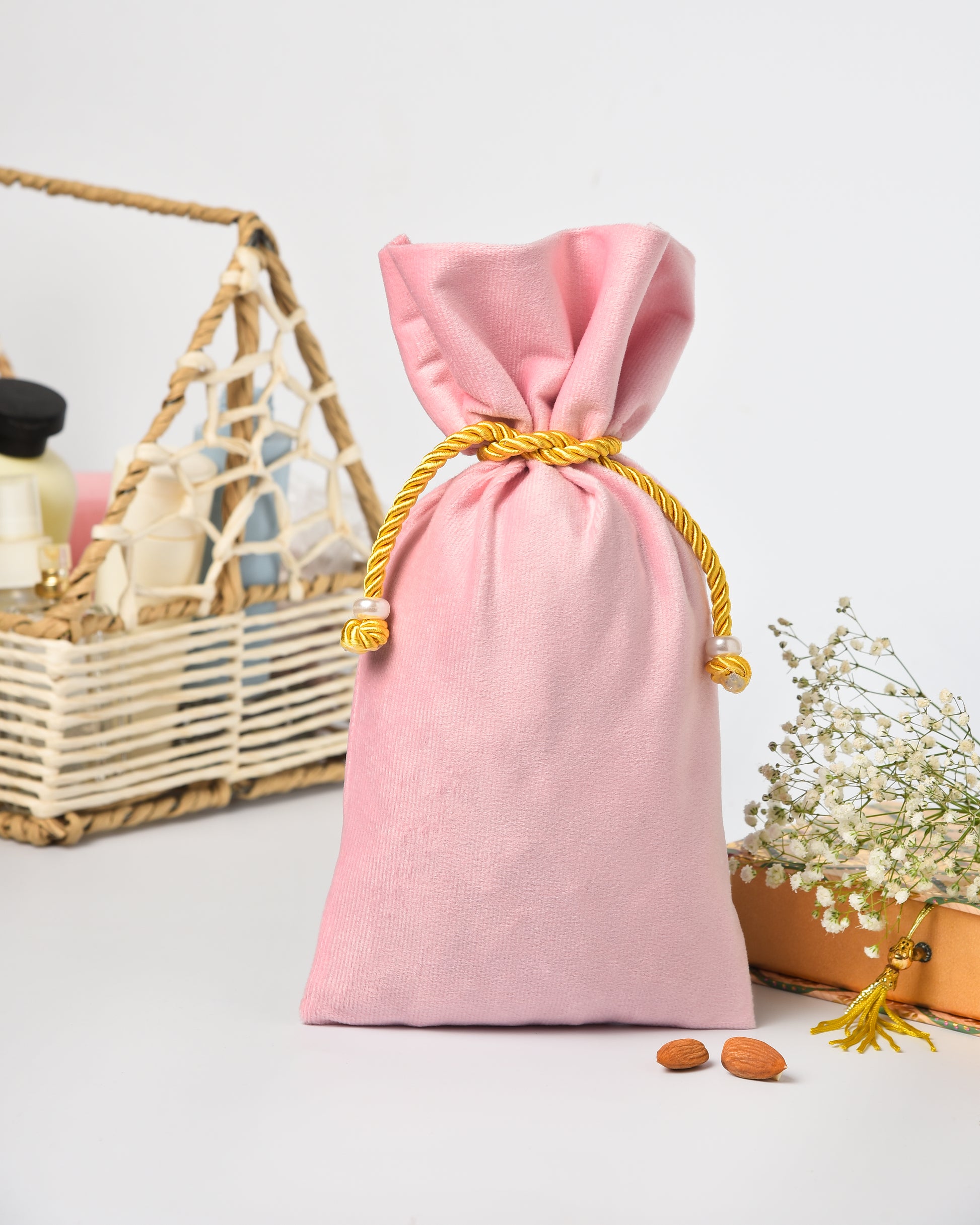 Light Pink Velvet Fancy Drawstring Potli
